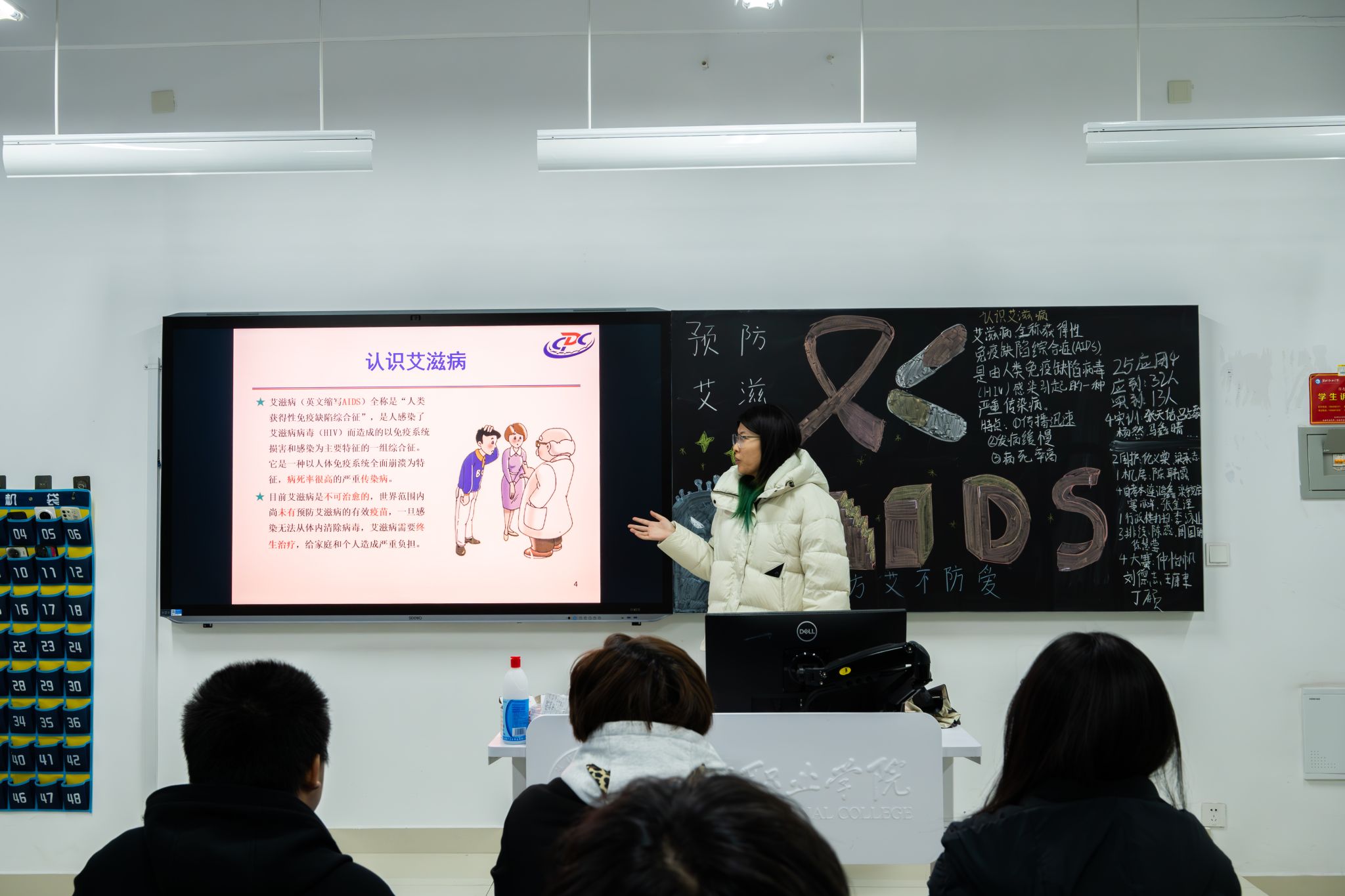 在本次活动中,各班级辅导员运用PPT、公益短片等形式,向同学们系统讲解了艾滋病的基本知识、传播途径和预防方法,同时结合实际案例,深入阐明了防艾工作对于促进个人健康成长、维护校园和谐稳定以及保障社会公共卫生安全的重要意义。活动中,同学们踊跃参与、积极交流,一致表示要将防艾知识内化于心、外化于行,在日常学习与生活中自觉做好健康防护,主动传播防艾常识,共同营造健康无艾、和谐稳定的校园环境。