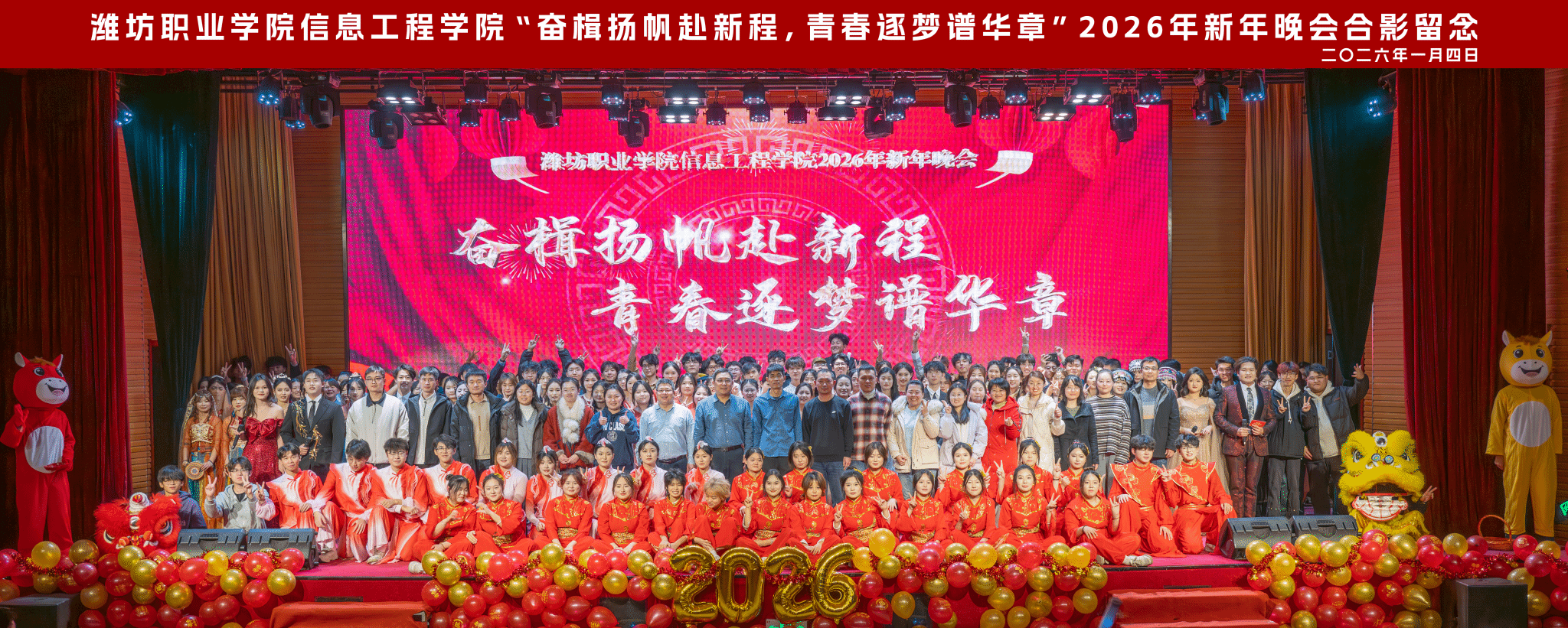 为丰富同学们的节日乐趣,增进同窗情谊,营造浓厚的校园氛围,1月4日,信息工程学院在图书馆报告厅举办“挺膺担当启新程,奋楫笃行谱新篇”新年晚会。部分职能部门、二级学院负责人与信息工程学院全体师生共同观看晚会。开场舞《春潮颂》拉开辞旧迎新晚会序幕,师生与表演者热情互动。歌曲《小酒窝》勾勒甜蜜温情,传递生活浪漫;民族舞《弥渡山歌》展现滇西韵味,彰显中国乡土文化底蕴。小品《反诈联盟3.0》以反转剧情和诙谐表达传递反诈理念,强化全民反诈责任;舞蹈《舞动青春》尽显青春朝气,爵士舞《16》点燃现场气氛,喝彩声不断。随后,《别怕变老》《我们都是追梦人》等歌曲、小品《药方》、歌舞剧《有我》、舞蹈《丝路幻影》、朗诵《百年沧桑》接续上演,打造精彩视听盛宴。晚会最终在《相亲相爱》的欢快旋律中圆满落幕,舞者默契演绎传递温暖爱意,留下难忘记忆。本次新年晚会通过精彩纷呈的节目内容,奏响了青春奋斗的激昂乐章,展现了青年学子勇担时代使命的壮志豪情,极大地激发了信息工程学院全体师生的拼搏精神和进取意识。在新的一年,信息工程学院师生将继续团结一心,砥砺前行,为培养更多优秀人才、推动学院各项事业高质量发展而不懈努力。(张斌 李孟云供稿)