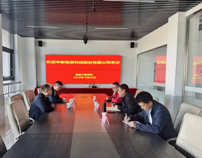 10月29日下午,中教畅享科技股份有限公司副总经理潘洪锋、山东区域经理梁传森到信息工程学院考察交流。信息工程学院主要负责人及相关专业教师参加座谈活动。